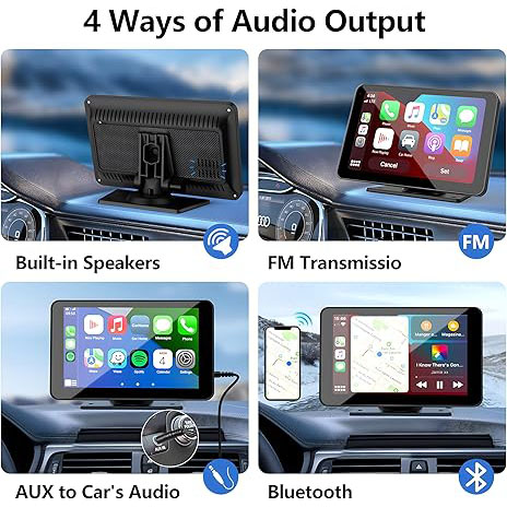 - 【7 Inch Touch Screen & Real-Time GPS Navigation】Our apple carplay screen adopts 7-inch IPS touch display screen, 1024*600 resolution 1080P Full HD, which is responsive, bright and vivid, providing precise real-time positioning GPS navigation without delay, and The real-time map information is enlarged and displayed on the apple carplay screenand. Vivid for refreshing old cars