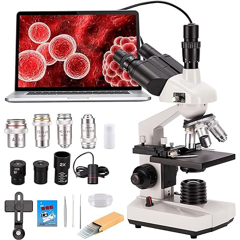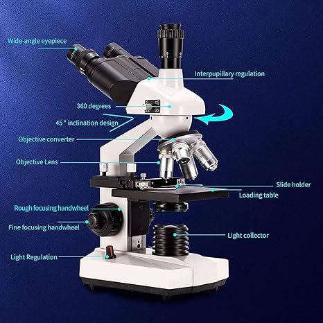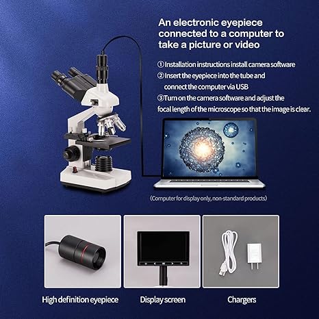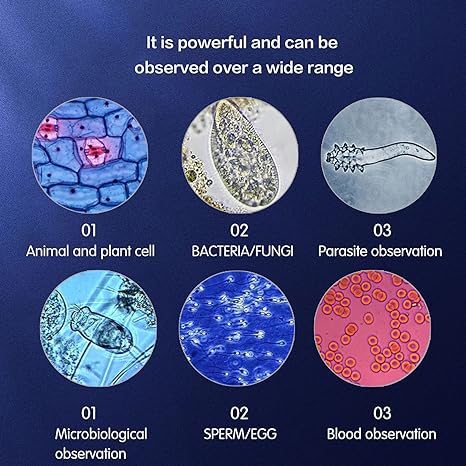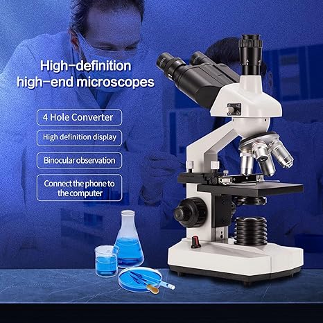 • 【Trinocular Compound Microscope】This 40X-5000X biological microscope is designed to help doctors/amateur scientists/hobbyists explore the wonderful world of life. A super stylish and versatile compound microscope for viewing minute details on slides; built for clinicians, high school and college science students, and enthusiastic hobbyists.