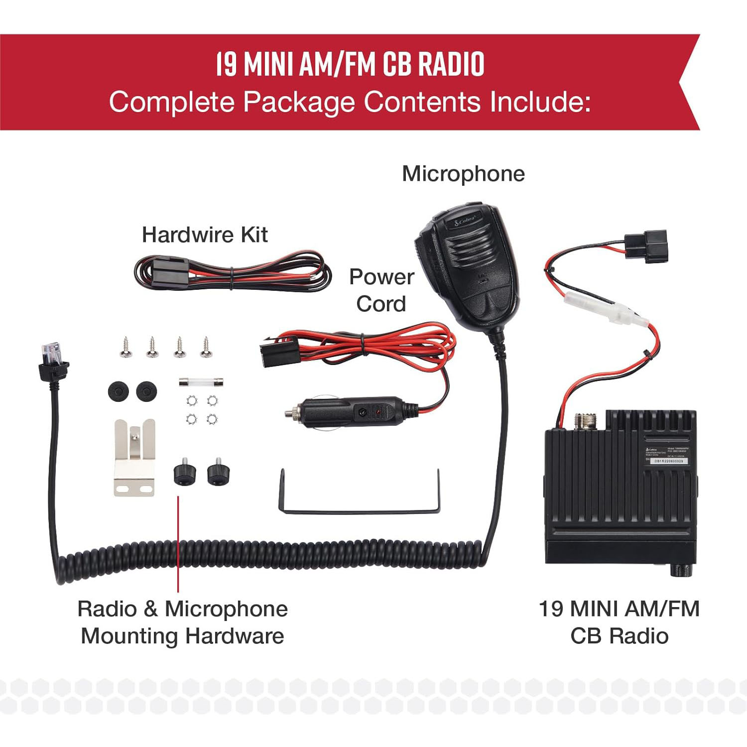 - Hardwire or 12V CLA Power Options – Includes 48″ Hardwire Kit for direct-to-battery installation & 48″ 12V Power Adapter for instant power. Conveniently connect or disconnect from the MINI CB as needed (12V Power Adapter included with 19 MINI AM/FM).