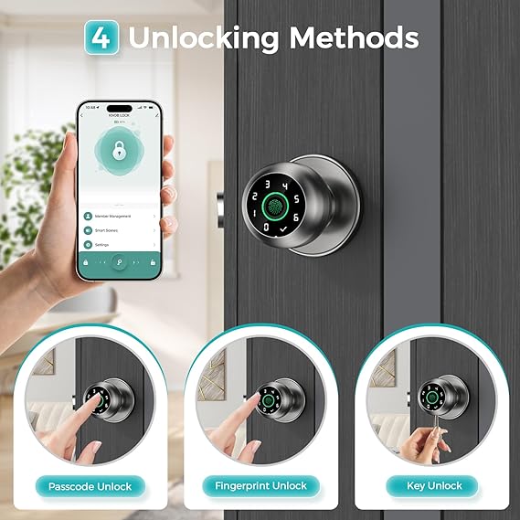 - 【Smarter, Safer】 The door lock has biometrics and supports App control. The dual management of fingerprint and password provides a high level of security. You can realize fingerprint, password management, unlocking records, automatic locks, access modes, and security locks through the App. to know everything about your home.