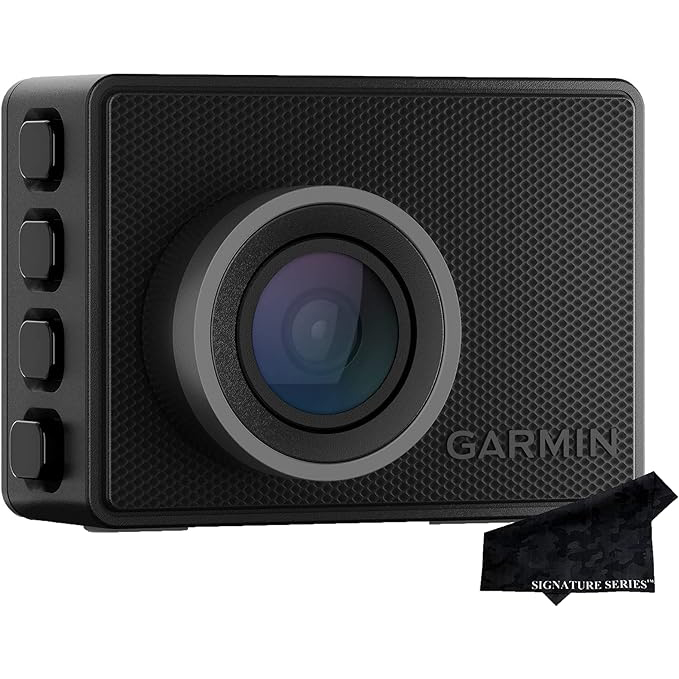 • This Bundle Contains: 1 Garmin 010-02505-00 Dash Cam 47, 1080p and 140-degree FOV, Monitor Your Vehicle While Away w/ New Connected Features, Voice Control, Compact and Discreet, Includes Memory Card + 1 Signature Series Black Camo Extra Soft Microfiber Lens Cloth for Screens, Glasses, Lenses, Scopes, etc