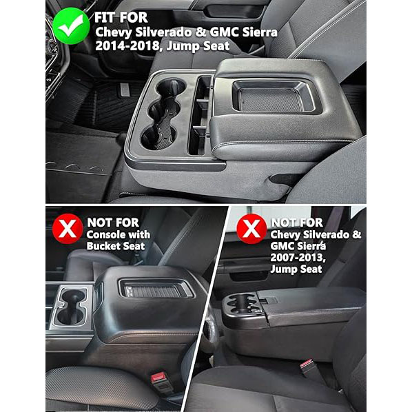 - CONSOLE REPLACEMENT COVER – OEM skin upholstery, well crafted and compatible with 2014 2015 2016 2017 2018 Chevy Silverado & GMC Sierra 1500/2500/3500, Jump Seat. (NOT SLIP-ON or PULLOVER)