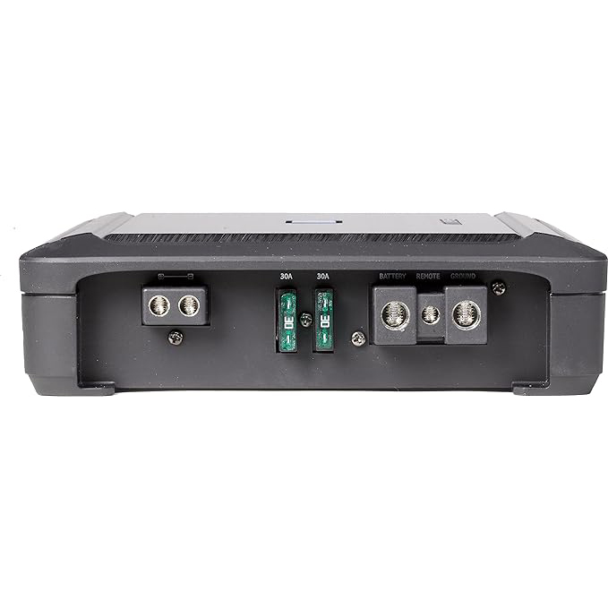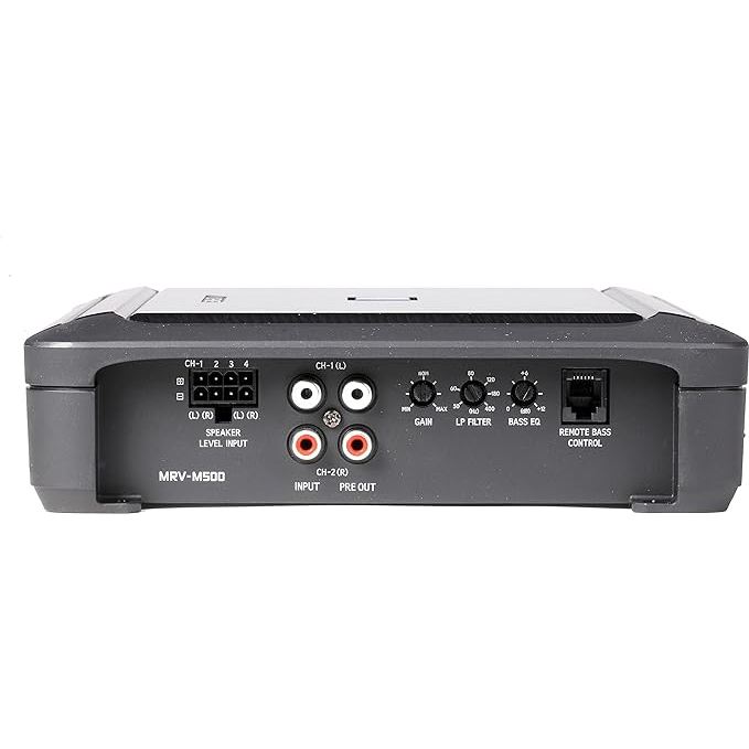 V-Power Series Class D Monoblock Digital Amplifier RMS Power Rating: 4 ohms: 300 watts x 1 chan. 2 ohms: 500 watts x 1 chan. Max power output: 500 watts x 1 chan. Integrated wire and mounting screw terminals S.T.A.R. circuitry LED power (blue) and protect (red) indicators Variable Bass Boost (0 to +12 dB bass boost at 50 Hz) Soft start turn-on 4 or 2 channel operation 4-channel speaker-level inputs Preamp RCA outputs to daisy chain multiple amps 3-way protection circuitry (thermal, overload, and speaker short protection) Dual speaker terminals simplify the hookup of multiple speakers Heavy duty aluminum alloy heat-sink Input sensitivity: 0.4V – 10V Non-fading pre-amp output Variable low-pass filter (50-400 Hz, 24 dB/octave) CEA-2006 compliant amplifier