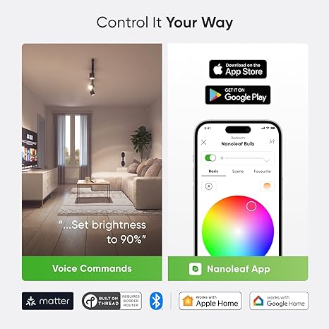 - [Use with a Matter Hub & Thread Border Router] A Matter compatible hub, thread border router, and iOS/tvOS 16.5+ or Android OS 8.1+ is required to connect this bulb to a smart home ecosystem. See requirements below. For control with just the Nanoleaf App, only Bluetooth is required.