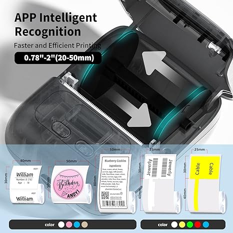 - Easy to Use – M110 mini thermal portable label printer with bluetooth that syncs to your mobile iOS or android phone in 2 seconds (USB for PC, Win & Mac). M110 label maker machine print smooth and fast printing. Adjustable paper holder & automatic label identification, it is built to prevent paper jams and deviations, makes your printing more fast.