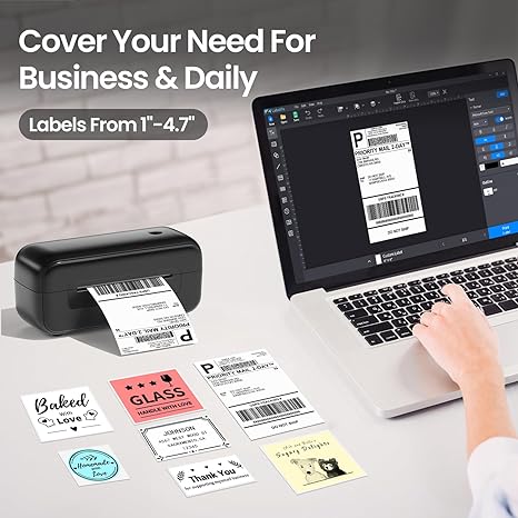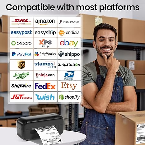 - √ Multi-platform Compatible-This printer is compatible with almost all shipping and e-commerce platforms, including Amazon, eBay, UPS, FedEx, Shopify, and more. It supports various brands of thermal labels with widths ranging from 1-4.6 inches, allowing you to customize and print product labels, barcode labels, thank-you stickers, and more. For optimal results, we recommend using Phomemo official thermal label paper.