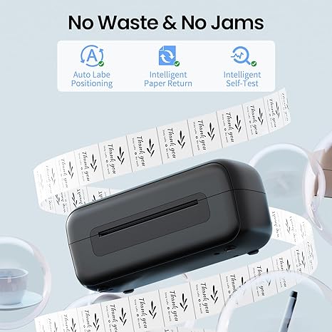 - √ Smart, Portable Printer-With just one click, you can efficiently complete your tasks. The thermal label printer features automatic calibration and positioning, smart paper return, and intelligent self-check functions, eliminating paper wastage and jamming. Its compact size makes it suitable for various settings such as homes, offices, and warehouses.We offer lifetime technical support for your peace of mind.