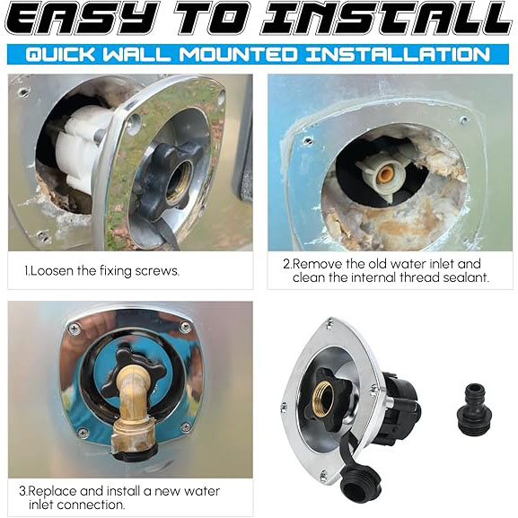 - 【BUILT-IN CHECK VALVE】: The RV inlet design includes a built-in check valve that stops the flow of water back and seals the water inlet to reduce pollution, ensures a clean water supply for your RV.