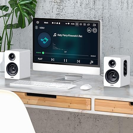 - 【QUIET STANDBY and ENERGY SAVING】Built in noise elimination system. Built-in chip, intelligent filter input audio, automatic filter to remove noise, keep the speakers absolutely quiet while standby. The design standard conforms to EU ER2 standard, saving energy. A good speaker, not only can provide good sound performance, when not in use, can quietly let you forget its existence.
