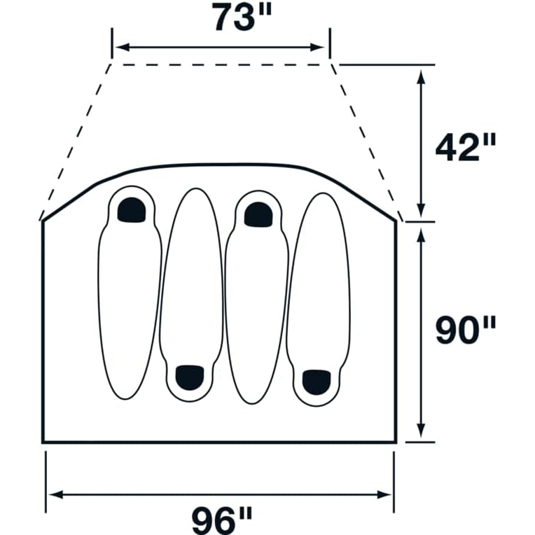- TECH SPECS. Stuffsack: 10″ X 27″ (25.4 cm X 68.6cm). Packs into a duffel-bag style stuff-sack. Weight: 13lbs. Floor Area: 58.13 square ft. Peak Height: 68″. Made without a flame-retardant coating. Footprint sold separately.