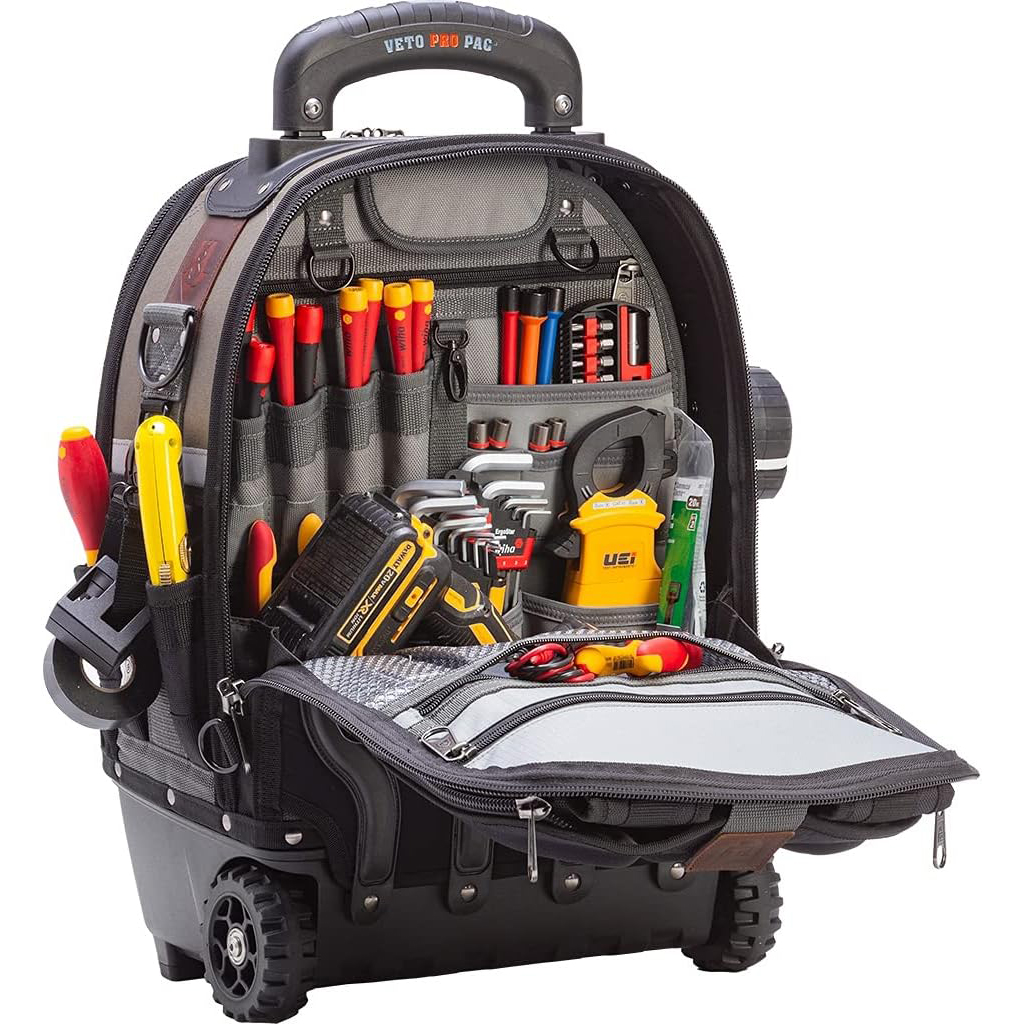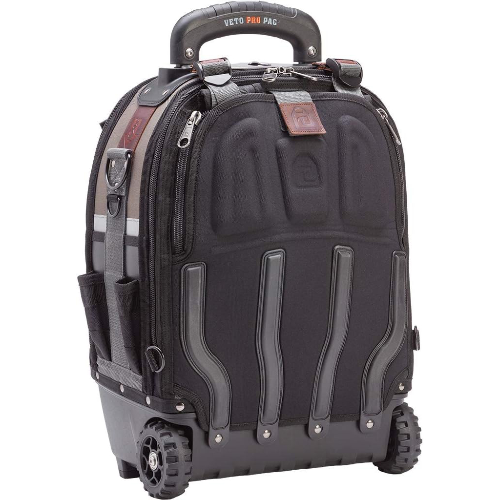 The TECH PAC WHEELER is a rolling version of the best-selling TECH PAC backpack tool bag. Featuring additional volume capacity & Veto Pro Pac’s proprietary V-SWAP system that offers the back meter panel to be swapped out with optional laptop or bulk storage panels (both sold separately), the TECH PAC WHEELER provides a versatile tool transport system functioning as both a wheeled and
